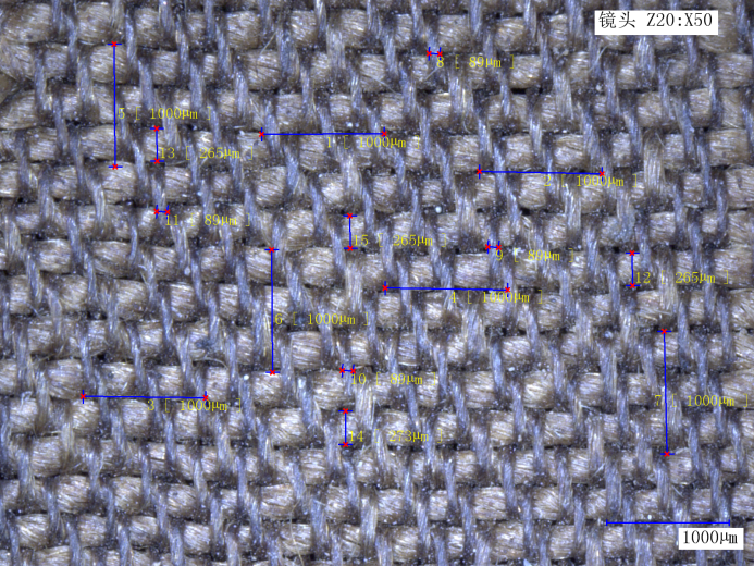6.3.2 測量不同紗線的投影寬度。選擇五個以上不同位置進行測量,取其平均值。