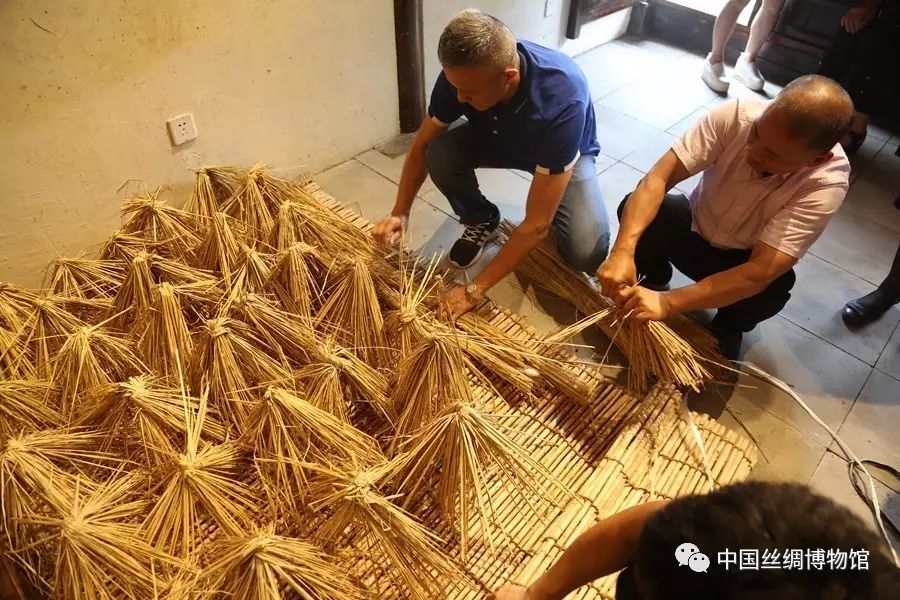 上午,中絲博桑廬熱鬧非凡,來自海寧云龍村的傳承人和蠶農(nóng)為來館觀眾和活動參與者展示蠶桑非遺,表演傳統(tǒng)繅絲、剝綿兜、拉絲綿被、祭蠶神、唱馬鳴王、裹蠶訊粽、編蠶網(wǎng)、搓草繩。讓大家在中絲博館內(nèi)近距離領(lǐng)略和體驗了蠶鄉(xiāng)的各類風(fēng)俗活動。