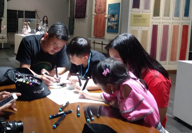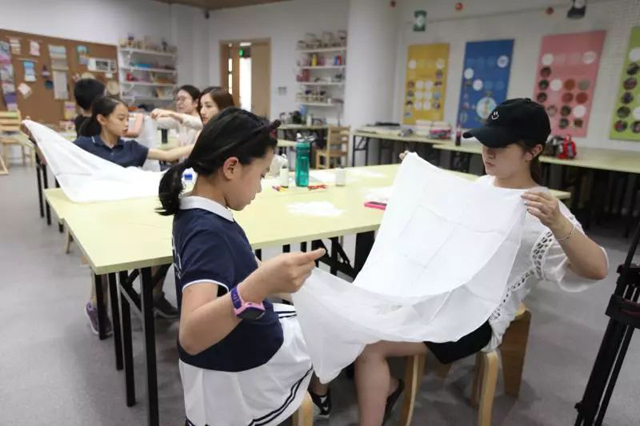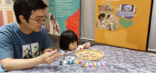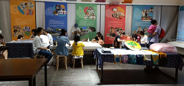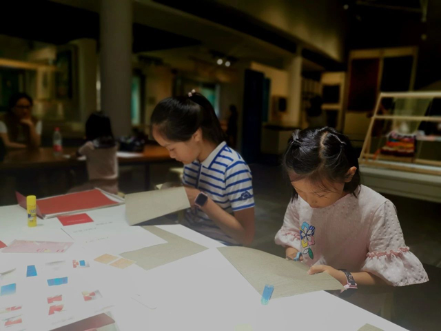 當天,女紅工坊和女紅傳習館也開展了畫蠶繭畫、畫蠶匾畫、迷你時裝-明代紙衣、紙板織、傳統(tǒng)紋樣填色、親子染纈課程等豐富的手工體驗活動。