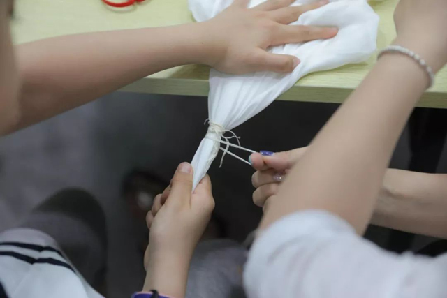 活動現(xiàn)場蠶農(nóng)包的蠶訊粽呈細長的錐形,用粽箬葉裹成,內有糯米、赤豆和紅棗等。不少觀眾還紛紛請教蠶農(nóng)裹粽子的訣竅,親自上手體驗了一把。