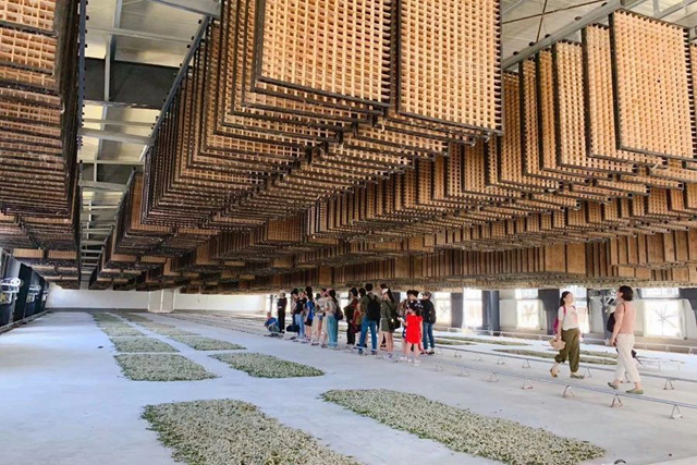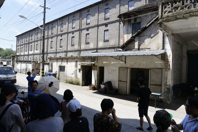 第二天,學(xué)員們從國(guó)絲館出發(fā)前往位于嘉興海寧長(zhǎng)安鎮(zhèn)的浙江米賽絲綢有限公司。該公司的前身是始建于1921年、建國(guó)后公私合并成立的浙江制絲一廠。大家在公司領(lǐng)導(dǎo)喻永達(dá)老師的帶領(lǐng)下在酷熱的廠房中參觀烘繭、選繭、煮繭、繅絲、復(fù)搖、成絞、絡(luò)絲、織綢的工業(yè)化生產(chǎn)線,機(jī)械制絲綿的生產(chǎn)流程以及廠區(qū)里一個(gè)日據(jù)時(shí)期建設(shè)并保存下來(lái)成為工業(yè)遺產(chǎn)的繭庫(kù)。