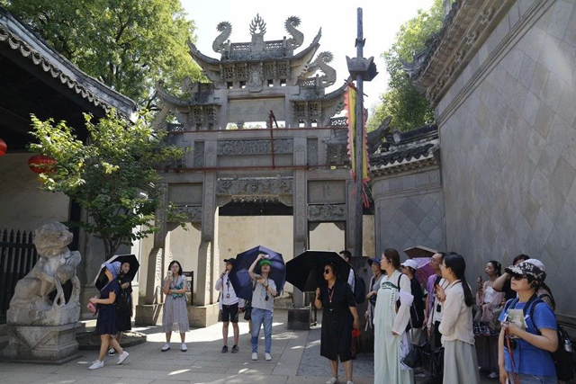 當(dāng)晚,學(xué)員們來(lái)到江南絲業(yè)重鎮(zhèn)——湖州南潯古鎮(zhèn)。團(tuán)員們?cè)谛蛄魉g參觀古鎮(zhèn)重要的絲業(yè)巨商故居,晚清南潯“四象”之首劉鏞的私家花園小蓮莊,江南四大藏書樓之一的中國(guó)近代私家藏書樓絕唱的嘉業(yè)堂藏書樓,由江南傳統(tǒng)建筑和法國(guó)文藝復(fù)興時(shí)期歐式建筑組成的中西合璧的張石銘舊宅,清末民初以收解捐稅、維護(hù)絲商利益為宗旨由絲商集資的南潯絲業(yè)公會(huì)。