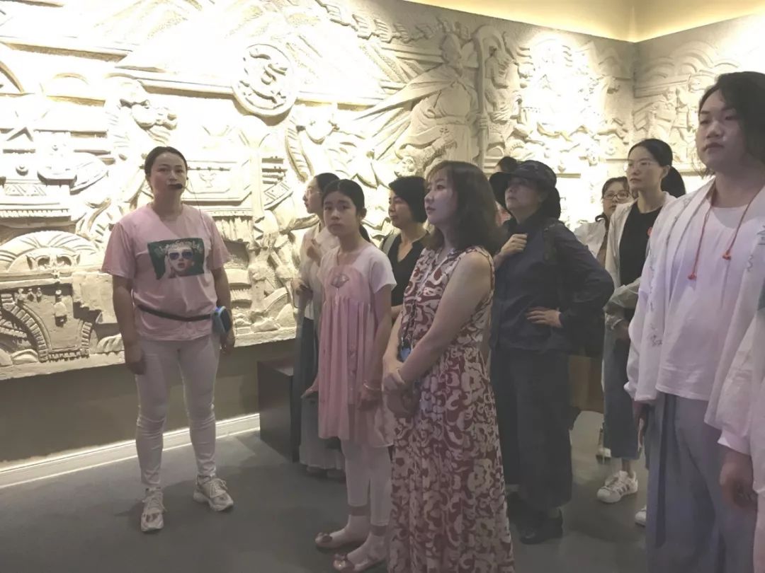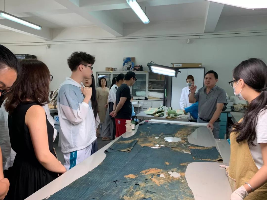 8月17日下午,我們來到了新疆文物考古研究所??脊潘綍r(shí)不對(duì)外開放,是國絲館與之合作,特意為研學(xué)團(tuán)開放了一下午。團(tuán)員們?cè)谘芯克僖淮胃惺芰斯湃说木律?。在李文瑛所長(zhǎng)的帶領(lǐng)下,我們看到千年不腐的干尸小河公主,看到了她長(zhǎng)長(zhǎng)的睫毛,還有嘴邊那一抹似有似無的微笑。李所長(zhǎng)還告訴我們除了人的干尸,也有木頭人出土,有些木頭人裝有人的手臂,推測(cè)這些木頭人是代替了不能還鄉(xiāng)下葬的商旅。隨后,李文瑛所長(zhǎng)及趙豐館長(zhǎng)和團(tuán)員們一起進(jìn)行了座談。趙豐館長(zhǎng)向大家講述了此次研學(xué)活動(dòng)的目的和意義,團(tuán)員們作了簡(jiǎn)短的自我介紹。李所長(zhǎng)欣喜于大家來自不同職業(yè),也對(duì)紡織品文物有這么高的熱情和研究精神,她祝愿我們接下來的行程順利圓滿,大家能夠收獲滿滿。