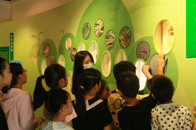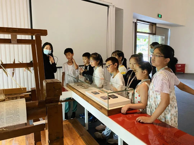 在4天時間里,夏令營班分段式參觀了蠶桑館 、織造館、絲路館、時裝館、修復(fù)館、“萬物生靈”特展、兒童館等。通過問題式學(xué)習(xí)的形式,聆聽生動詳細的講解,近距離觀察絲綢文物與相關(guān)展品,學(xué)員們對蠶桑絲織與絲綢技藝等有了初步的印象。