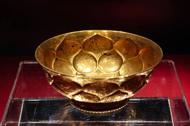 參觀陜西歷史博物館鎮(zhèn)館之寶“鴛鴦蓮瓣紋金碗”。它是電影《長安三萬里》中,李白豪放吟誦《將進(jìn)酒》名場面中手持“金碗”的原型,也出現(xiàn)在近期熱播劇《?唐朝詭事錄之西行》中。