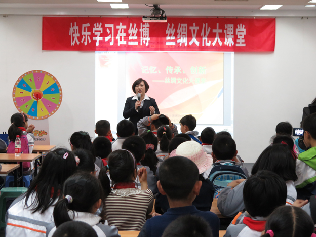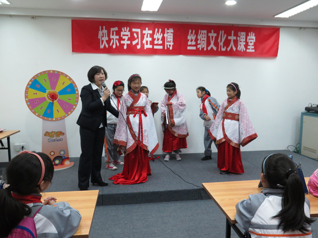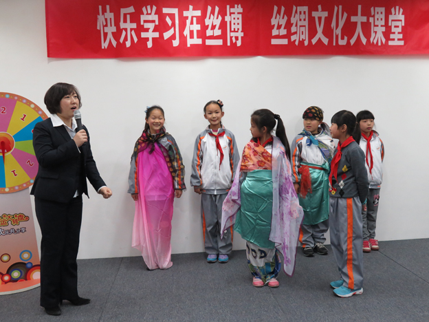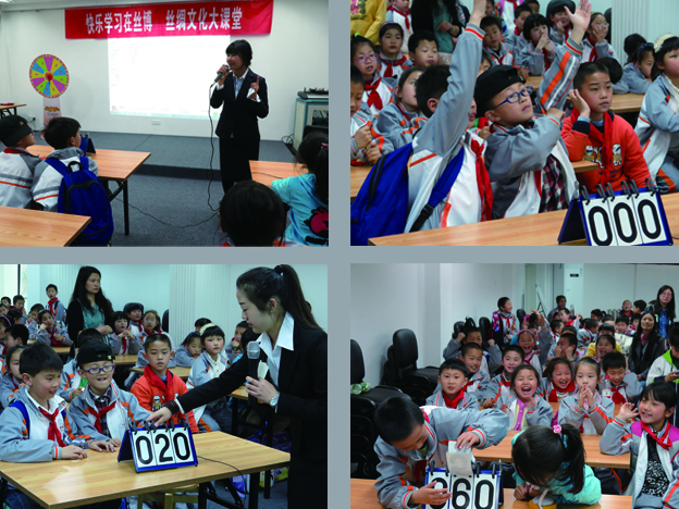 2014年的春天早早地來到了杭州,在萬物復(fù)蘇、陽光明媚的日子里,中國絲綢博物館策劃并組織了第四屆“絲綢文化大課堂”活動。4月4日,來自九蓮小學(xué)三年級的同學(xué)們在歡樂的春游之際,在我館參與了一場發(fā)現(xiàn)絲綢歷史記憶、學(xué)習(xí)絲綢文化和拓展知識面的趣味競賽活動。