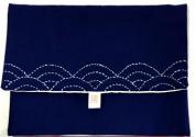 此款IPAD包設計元素來源于中國古代傳統(tǒng)工藝扎染,在傳統(tǒng)藍布上運用仿扎染的方式形成白色線條,整體給人感覺簡潔、古樸、自然。紐扣采用按扣。