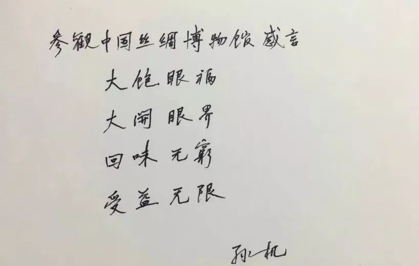 講座之余,孫機(jī)先生參觀了中國絲綢博物館并留下寶貴感言。