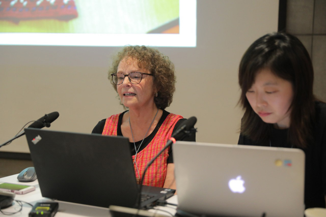 Beth研究了世界許多國(guó)家與地區(qū)的針織藝術(shù),尤其是北歐地區(qū)的針織傳統(tǒng)。她認(rèn)為,現(xiàn)今的手工藝者與纖維藝術(shù)家們需要承認(rèn)并尊重前人的技藝成果。在講座中,她與聽眾分享了9個(gè)地區(qū)的針織技藝,包括19世紀(jì)英格蘭的Gansey毛衣、蘇格蘭的Sanquhar手套、挪威的Lusekofte夾克衫、瑞典的North Halland套頭衫、冰島的Lopapeysa毛衣、芬蘭的Korsn?s毛衣、愛沙尼亞的Muhu手套、拉脫維亞的編花手套、加拿大的Cowichan毛衣等。從這些傳統(tǒng)手工藝術(shù)品的歷史、文化傳統(tǒng)、社會(huì)背景、工匠技藝、傳承模式、風(fēng)格、用途等諸多方面給予詳細(xì)的介紹。其中有不少針織技藝是本次研習(xí)班教學(xué)學(xué)習(xí)的對(duì)象。各個(gè)地區(qū)的針織傳統(tǒng)也反映了當(dāng)?shù)氐奈幕?,Beth認(rèn)為針織藝術(shù)是為了更好地服務(wù)人們的生活,并讓手工藝者成為溫暖、溫柔的人。