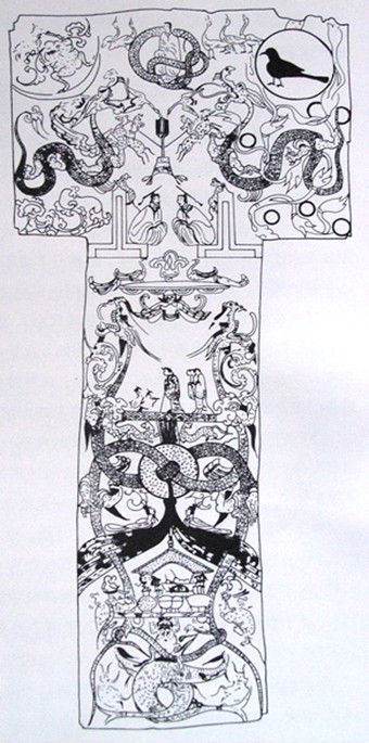 圖23 長沙馬王堆一號漢墓,帛畫線描圖,日輪陽烏