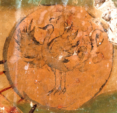 敦煌的畫工在繪圖時,也并非只是將中國傳統(tǒng)日、月圖像完全模仿繪上。鳳凰在中國傳統(tǒng)神話中是“太陽之鳥”,因此敦煌的畫工就把代表太陽與鳳凰畫在一起,以三足鳥或類似鳳凰的造型出現(xiàn)。