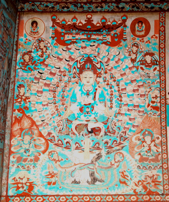 敦煌石窟群,包含莫高窟、瓜州榆林窟、東千佛洞、西千佛洞、肅北五個廟石窟,以莫高窟為代表。從公元4到14世紀(jì)不間斷開鑿。直到14世紀(jì),海上絲綢之路興起以后,敦煌石窟才慢慢淡出人們的視野。