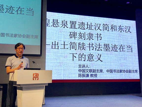 8月4日,中國絲綢博物館邀請中國文聯(lián)副主席、中國書法家協(xié)會副主席陳振濂來到“經(jīng)綸講堂”,為大家主講《敦煌懸泉置遺址漢簡和東漢碑刻隸書——出土簡牘書法墨跡在當下的意義》。