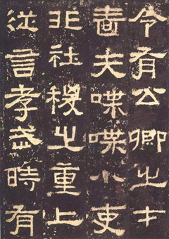 東漢碑刻里有很多歲月蒼茫的痕跡,我們今天教學(xué)子兒童學(xué)寫字,為了方便易學(xué),不太會用殘破的碑刻拓片來作為開始,但這樣一來,也就無法領(lǐng)略古金石碑刻中包含的自然歲月之美。