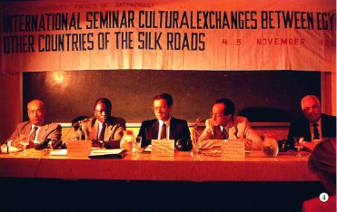 4、開(kāi)羅討論會(huì),1990年11月4日至11月5日在開(kāi)羅大學(xué)舉行,由開(kāi)羅大學(xué)主辦。主題:埃及與絲綢之路沿線國(guó)家的文化關(guān)系。在這次討論會(huì)上提交的主要論文有:開(kāi)羅大學(xué)考古系主任Ali Radwan《亞歷山大對(duì)斯瓦的遠(yuǎn)征》;日本近東文化研究中心高級(jí)研究員川床眭夫《埃及西奈圖爾發(fā)現(xiàn)的阿拉伯文文獻(xiàn)》;Said Ashur教授:《絲綢之路》;Sayed Abdel-Aziz Salem教授《遠(yuǎn)東與歐洲之間的航行》;絲綢之路咨詢委員會(huì)成員Hassan EL-Basha教授《碑銘中非阿拉伯語(yǔ)稱號(hào)所反映出來(lái)的埃及與絲綢之路沿線國(guó)家的關(guān)系》;SayedaKashif教授《古代世界和中古時(shí)代的絲綢之路》;Muhammed al-Kahlawi博士《安達(dá)魯西亞的絲綢中心》。