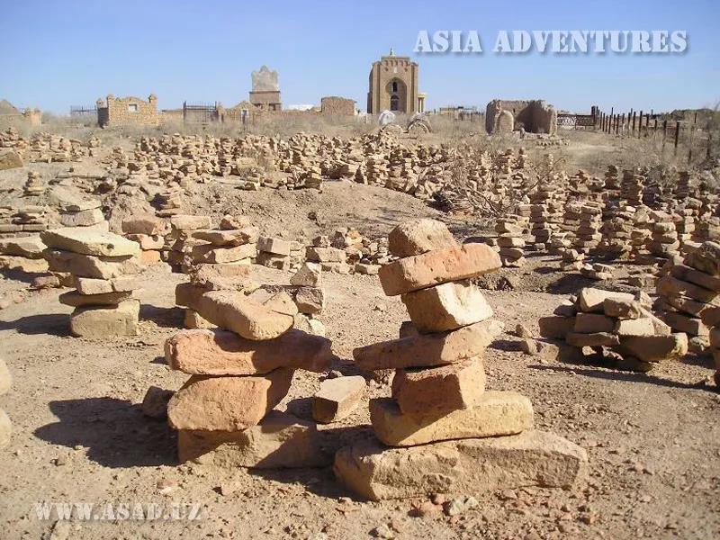 5月5-9日,布哈拉(Bukhara)——捷爾梅茲地區(qū)。踏勘的主要遺址是布哈拉市中心1238年塔剌比反抗蒙古人而起兵聚義的阿爾克堡;位于布哈拉西北距阿姆河110公里處之瓦拉赫沙古城發(fā)掘現(xiàn)場(公元前3-2世紀(jì)至11世紀(jì));昭武九姓之一的畢國遺址(拜城)發(fā)掘現(xiàn)場(西去布哈拉55公里);距那黑沙不古城6公里的埃爾庫爾干遺址;帖木兒的誕生地沙赫里·沙勃茲(渴石);古粟特與吐火羅之間的天然分界“鐵門”;捷爾梅茲的火者·哈欽·忒爾迷清真寺;怛密古城;北距捷爾梅茲65公里,位于設(shè)拉巴德河谷布斯坦賽的夾爾庫坦遺址(公元前16-15世紀(jì)),并參觀這些地方的博物館。在布哈拉所見與中國有關(guān)之文物有:市博物館中陳列的一幅19世紀(jì)的維吾爾地毯,其上有中國道教的太極圖案;19世紀(jì)布哈拉汗國的夏宮中的一個(gè)瓷盤,上繪長江流域風(fēng)景名勝五老峰、廬山瀑布、徐亭煙柳、白鹿七洞、九江關(guān)、麻姑仙壇、花州春香、南涌歸蹤、滕王高風(fēng)、東湖夜月。