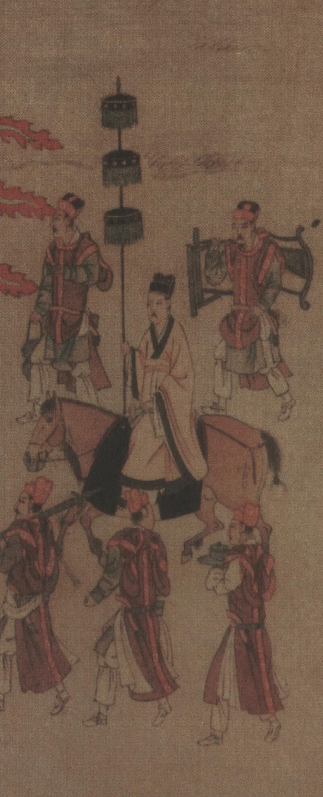 第二,關(guān)于酒。宋趙彥衛(wèi)《云麓漫鈔》卷七:“建炎中興,張、韓、劉、岳為將,人自為法,當(dāng)時有‘張家軍’、‘韓家軍’之語。四帥之中,韓、岳兵尤精,常時于軍中角其勇健者,令(一作另)為之籍。每旗頭、押隊闕,于所籍中又較其勇力出眾者為之;將、副有闕,則于諸隊旗頭、押隊內(nèi)取之。別置親隨軍,謂之‘背峞’,悉于四等人內(nèi)角其優(yōu)者補(bǔ)之。一入背峞,諸軍統(tǒng)制而下,與之抗禮,犒賞異常,勇健無比,凡有堅敵,遣背峞軍,無有不破者。見范參政致能說,燕北人呼酒瓶為峞,大將之酒瓶,必令親信人負(fù)之。范嘗使燕,見道中人有負(fù)罍者,則指云:‘此背峞也。’故韓兵用以名軍。峞即罍,北人語訛故云,韓軍誤用字耳?!睄e,史書中常寫作嵬,“背峞”即親隨軍,乃經(jīng)優(yōu)中選優(yōu)的層層選拔,因此“勇健無比,凡有堅敵,遣背峞軍,無有不破者”?!对坡绰n》是宋代筆記中極有史料價值的一部,紀(jì)事多可信,范致能即范成大,講述出使見聞也很有實事求是之風(fēng)。這一段記載把親隨軍所以名作“背峞”的始末原由記載得如此清楚,我們因此可以知道,張瑀《文姬歸漢圖》為侍從添畫的正是這樣一件用作盛酒的背罍。附帶說一句,畫家畫的是歷史題材,但卻并沒有想要畫中人的種種特征符合它的歷史時代,比如侍從的發(fā)式,即是取自契丹。畫家自是以當(dāng)代經(jīng)驗仿寫古人。