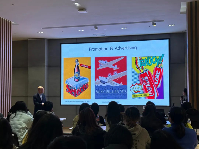 Vincent教授以商業(yè)藝術(shù)為主題,以傳統(tǒng)文化在現(xiàn)代商業(yè)展示設(shè)計(jì)中的應(yīng)用研究為主線,生動(dòng)介紹了游戲藝術(shù)、書籍插畫、廣告設(shè)計(jì)等商業(yè)設(shè)計(jì)類別,展示了全球從二戰(zhàn)結(jié)束至今的時(shí)尚潮流變化,強(qiáng)調(diào)了時(shí)尚界對(duì)文化藝術(shù)元素運(yùn)用的更新迭代,尤其以安迪·沃霍爾為例,說明藝術(shù)創(chuàng)作與商業(yè)消費(fèi)的完美結(jié)合可賦予傳統(tǒng)文化新的時(shí)代精神,新的消費(fèi)趨勢(shì)也將為傳統(tǒng)文化的活化指明新方向。