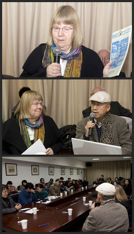 12月7日下午,來自德國的歐洲纖維藝術(shù)聯(lián)盟主席Beatrijs Sterk女士做了一個《當(dāng)代纖維藝術(shù):定位、市場、前景——在歐洲展現(xiàn)纖維藝術(shù)的時機》的講座。許多來自中國美術(shù)學(xué)院的染織設(shè)計系和纖維與空間藝術(shù)工作室的師生前來聆聽。