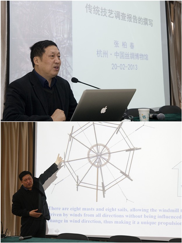 2月20日,中國絲綢博物館特意邀請張柏春老師在活動中心作《傳統(tǒng)技藝調研報告的撰寫》的講座。他首先通過許多案例,介紹了調查研究的相關知識和經驗,比如,調查研究的對象、基本方法、類型、成果的發(fā)表和意義。然后通過詳細生動的介紹大風車調查案例,讓聽眾強烈的感受到傳統(tǒng)工藝調查的魅力。