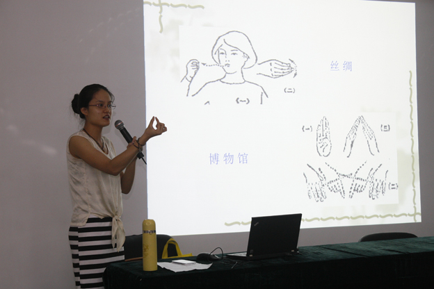 2013年9月23日上午,中國絲綢博物館活動中心開展了一場“無聲”的講座,原來是博物館專門針對講解員、展廳管理員、保安等一線崗位員工舉辦的手語培訓(xùn)講座。