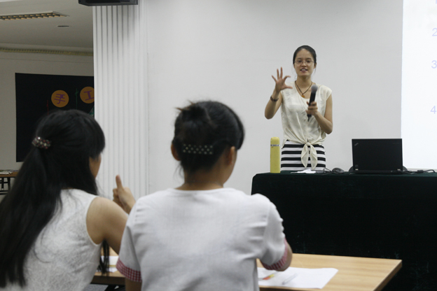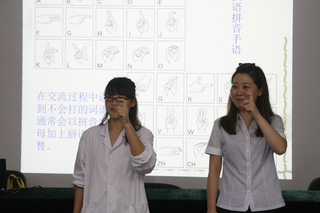 博物館在日常的開放中,難免會遇到一些聽力障礙的觀眾,在接待這些特殊觀眾群體時,一線工作人員能提供簡單的手語服務(wù),是博物館人性化服務(wù)的具體表現(xiàn)。為此,中國絲綢博物館專門組織這次培訓(xùn)活動。