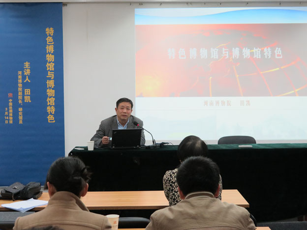 3月14日下午2時(shí)30分,河南博物院副院長(zhǎng)田凱在我館活動(dòng)中心上了一場(chǎng)題為“特色博物館與博物館特色”的專題講座,將上述博物館建設(shè)的基本問(wèn)題一一解答。來(lái)自浙江博物館、杭州市的博物館等同行和絲綢博物館的館員們一同聆聽了這場(chǎng)講座。