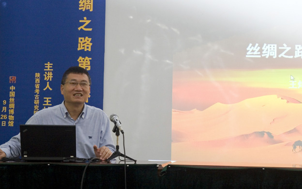 9月25日下午,遠(yuǎn)道而來(lái)的陜西省考古研究院院長(zhǎng)王煒林和新疆文物考古研究所所長(zhǎng)于志勇在中國(guó)絲綢博物館分別舉行了“絲綢之路第一橋”和“生活在古樓蘭:考古發(fā)現(xiàn)西域歷史”兩場(chǎng)講座,吸引了來(lái)自東華大學(xué)、浙江大學(xué)、杭州博物館等單位的許多聽(tīng)眾。