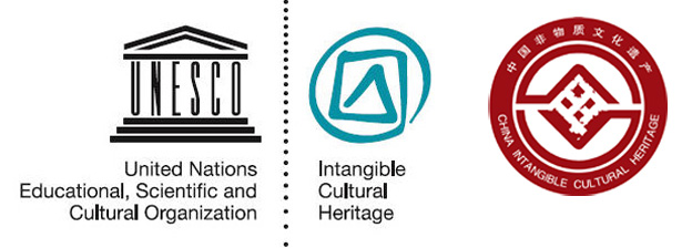 (左)世界非物質(zhì)文化遺產(chǎn)圖標(biāo)、(右)中國(guó)非物質(zhì)文化遺產(chǎn)圖標(biāo)