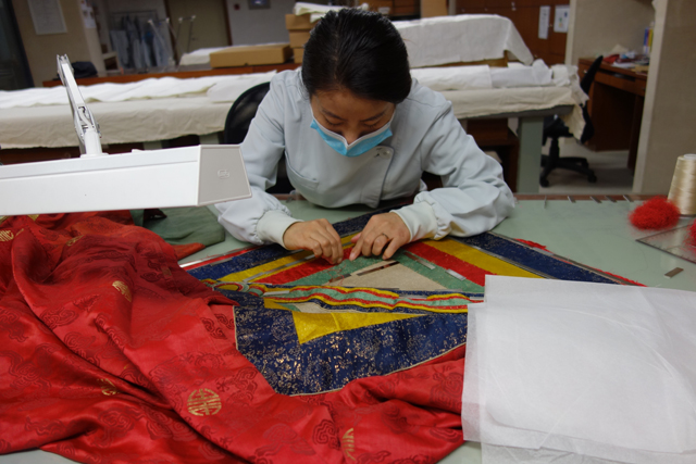 自2014年國(guó)絲館承擔(dān)西藏自治區(qū)文博單位修復(fù)項(xiàng)目以來(lái),已先后有5批次紡織品文物保護(hù)修復(fù)人員來(lái)館學(xué)習(xí)修復(fù)技術(shù)。其中4名修復(fù)人員經(jīng)培訓(xùn)后已能初步進(jìn)行獨(dú)立操作,今年又有新的學(xué)員來(lái)杭開(kāi)始新一輪的學(xué)習(xí)與培訓(xùn)。