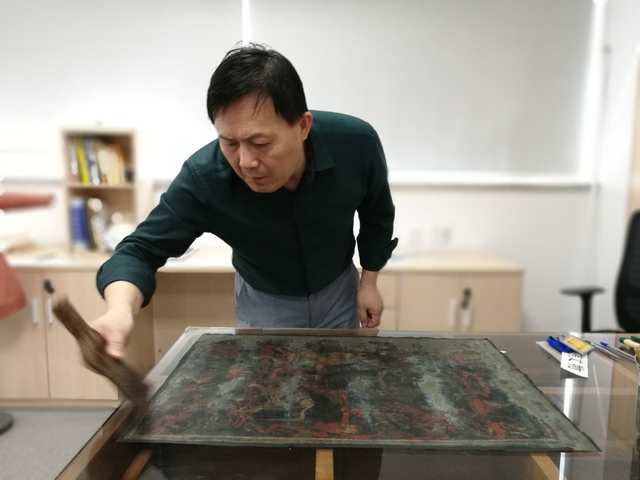 西藏宗教類(lèi)紡織品眾多,且多有病害,急需保護(hù),任務(wù)繁重。為加強(qiáng)文物保護(hù)科技援藏工作,提高西藏文物保護(hù)科技能力,2014年10月11日,國(guó)家文物局重點(diǎn)科研基地西藏聯(lián)合工作站在西藏博物館正式成立。作為參與聯(lián)合工作站的紡織品文物保護(hù)國(guó)家文物局重點(diǎn)科研基地的依托單位,中國(guó)絲綢博物館在近幾年的工作中切實(shí)履行了工作站所制定的“搶救性保護(hù)一批具有西藏地域特色的文物,培養(yǎng)一支西藏本地的文物修復(fù)隊(duì)伍”的目標(biāo)。