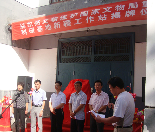 2011年8月16日,新疆工作站揭牌儀式在新疆維吾爾自治區(qū)博物館舉行。新疆工作站的建立將是新疆紡織品文物科技保護事業(yè)進步與發(fā)展的新起點,今后將以此為平臺,加強與科研基地的協(xié)作,不斷為新疆紡織品文物保護事業(yè)提供技術(shù)支撐和人才保障。