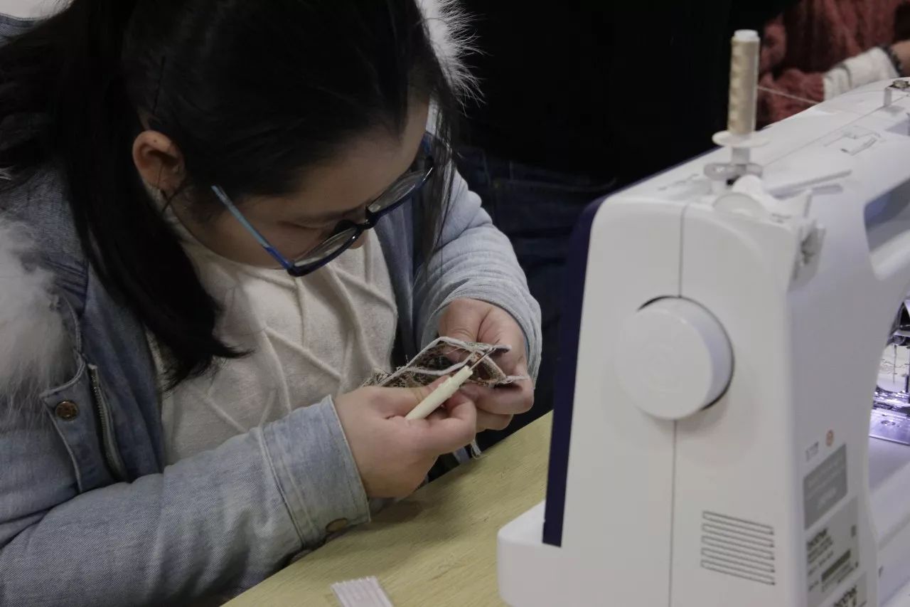 報名參加本次課程的大多數(shù)學(xué)員都是第一次使用縫紉機(jī),在傳習(xí)館老師的帶領(lǐng)下大家不僅學(xué)習(xí)到了使用縫紉機(jī)的基本原理,還通過裁剪、熨燙等步驟,收獲了一個有趣的拼布花瓶。