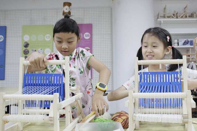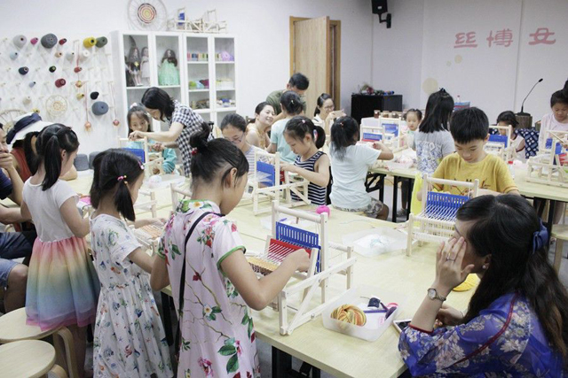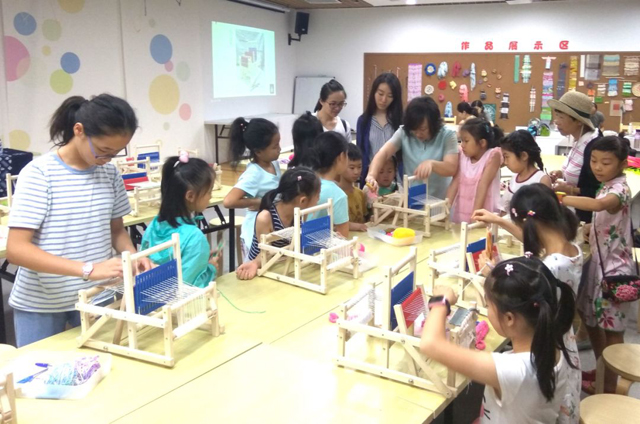 7月28日,展覽配套社教活動:“織機系列課堂”之鏈接織造的秘密也在女紅傳習館開課啦?!翱棛C系列課堂”是女紅傳習館以“織”為特色的手工活動,從認識織機到親手織布,通過親身體驗,讓不同年齡段的人們都對傳統(tǒng)紡織技藝有更好的認知。這一期課程我們組織了14位8——12歲的少兒來女紅傳習館學習織造的原理和技法,并親手織出一塊織物作品。