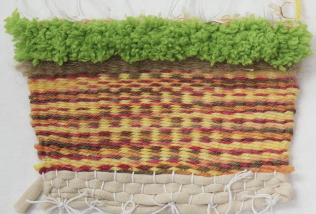 今天我受益無窮,了解了絲綢的文化和各種各樣的織布機的用法。我喜歡印度的紗麗,聽說是用樹液做的哦!織布中發(fā)生了很多意外,各種奇奇怪怪得線,都被我改成了有趣的藝術(shù)。