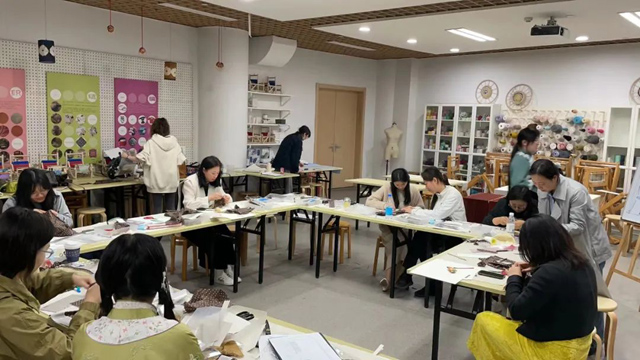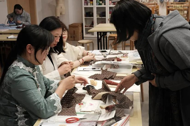 11月9日,研習(xí)班第三日,學(xué)員們已經(jīng)適應(yīng)了課程節(jié)奏,很快就投入了學(xué)習(xí)與制作。課前老師仔細(xì)確認(rèn)每一位學(xué)員的進(jìn)度,分享優(yōu)秀的部分,指出學(xué)員所做復(fù)原服飾存在的問題。