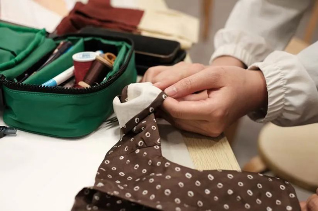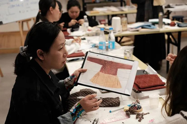四天的研習中,學員們都感慨頗多。首次嘗試做衣服的學員談到在制作之前應該先理清自己的縫制思路;有制衣經(jīng)驗的學員談到古代制衣與現(xiàn)代工藝的差異;高校老師則就復原的重要意義闡述自己的想法,期待古代制衣技術(shù)能夠再現(xiàn)并傳承下來;也有學員談到在制作衣服的過程中“牽一發(fā)而動全身”,每一步都需要仔細推敲,在縫制過程中也不能著急,一定要擺正心態(tài)。一位高定設(shè)計師表示回去后要做出一件等大的絞纈絹衣,希望得到老師更多指導。