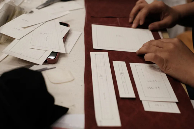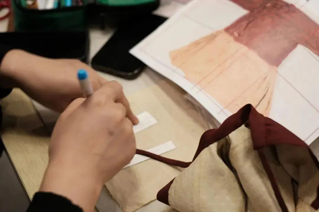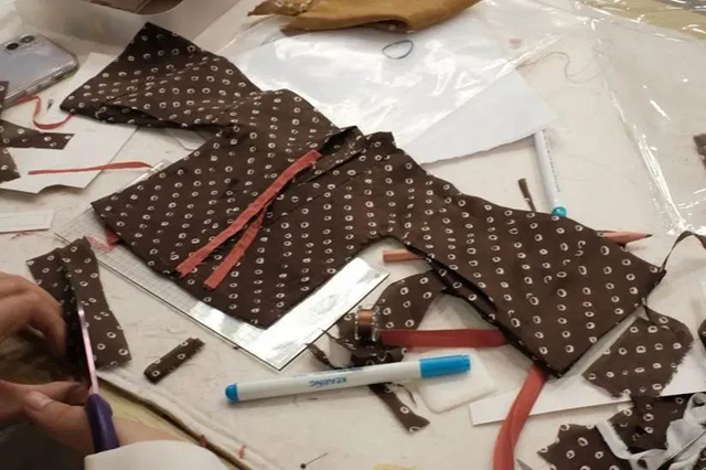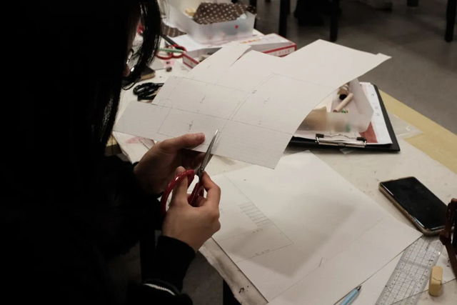 有了絞纈絹衣的制作經(jīng)驗,學員們很快就按照步驟開始打版和裁剪。