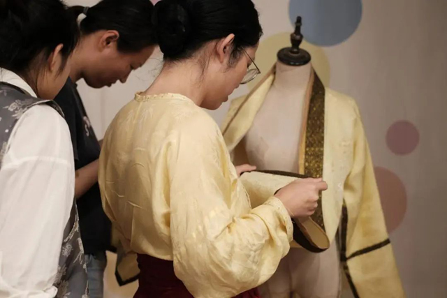 2023年8月7日,“中國(guó)古代服飾復(fù)原研究與實(shí)踐”研習(xí)班第二期正式開班。開班儀式上,中國(guó)絲綢博物館相關(guān)負(fù)責(zé)人介紹了女紅傳習(xí)館的服務(wù)宗旨和曾舉辦的精彩活動(dòng),以及對(duì)于本次研習(xí)班學(xué)習(xí)成果的期待,希望通過對(duì)館藏文物的復(fù)原研究讓文物活起來(lái),讓更多民眾了解中國(guó)古代服飾構(gòu)成之巧,技術(shù)之精,文化之美。導(dǎo)師王業(yè)宏教授詳細(xì)介紹了本次研習(xí)班的師資團(tuán)隊(duì),學(xué)員們介紹了各自背景和研習(xí)目的,增進(jìn)彼此了解。