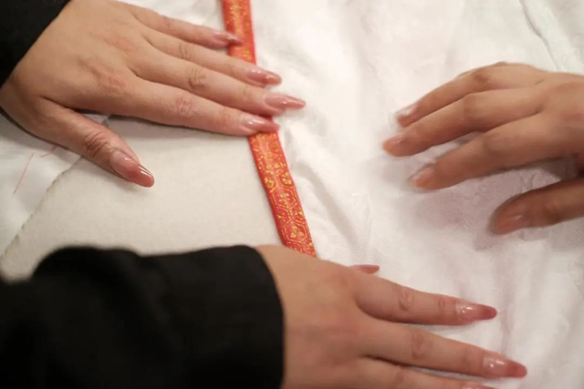 夾衣制作已經(jīng)接近尾聲,要經(jīng)過了重重關(guān)卡,40個步驟,才能完成的作品,有學(xué)員已經(jīng)做到了!大家不禁感嘆,這件手工夾衣真是“無價之寶”,“以后再也不覺得手工褙子貴了”。當(dāng)學(xué)員穿著自己花了三天縫制的夾衣時,內(nèi)心的愉悅也溢于言表。