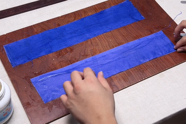 2、準(zhǔn)備漿糊 刮漿刀與一塊木板,在其中兩片布的正反兩面都刮上漿,力求刮勻刮凈,第三片布僅用在單面刮漿即可,另一面不刮漿。
