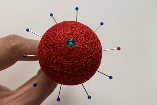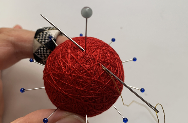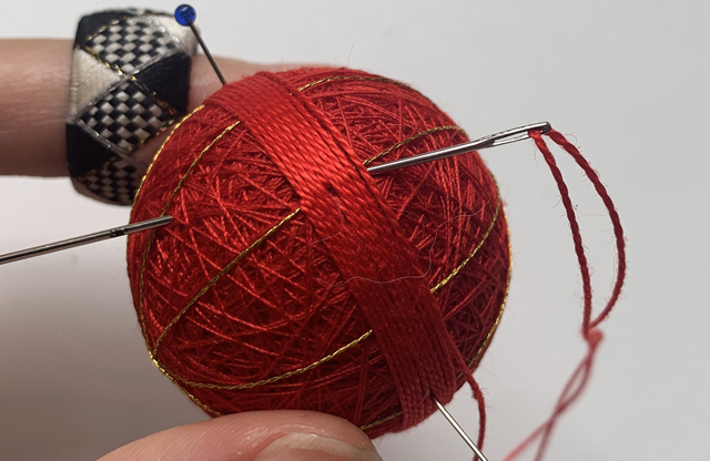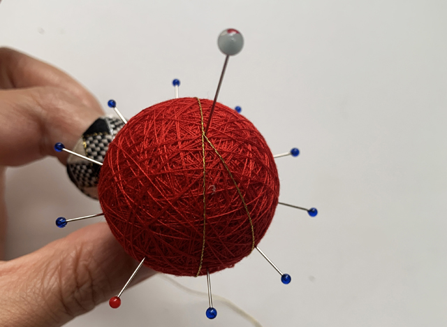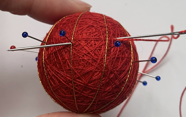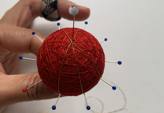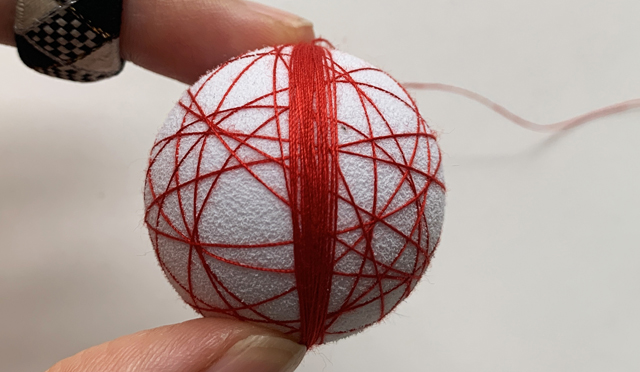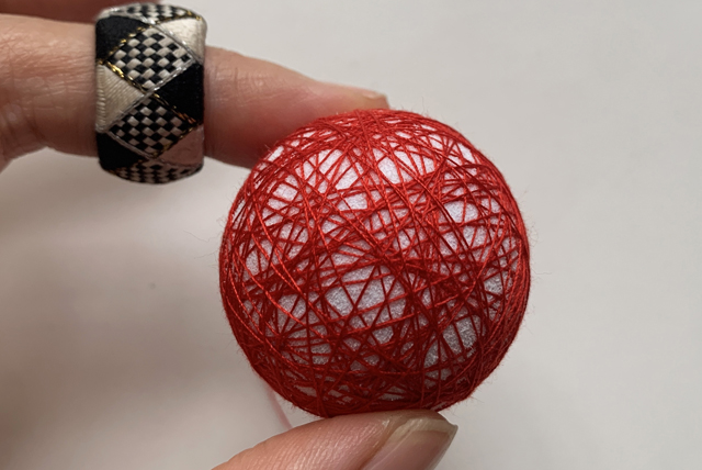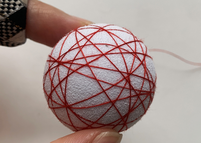 1.7 收線頭,纏素球結(jié)束,可以在球體表面多縫幾道,防止后期滑線。