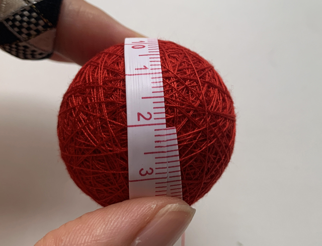 1.6 用軟尺多角度測(cè)量球的周長(zhǎng),如果各個(gè)角度都差不多,那素球就纏好了,可以進(jìn)入下一步,如果周長(zhǎng)差異比較大,比如超過2MM,那就繼續(xù)再纏一些素球線。