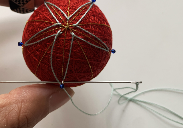 3.6 繼續(xù)到隔壁分球線的上方進(jìn)出針,一直這樣一上一下。