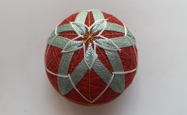 3.21 然后換線繡獨(dú)立的2圈,則此面繡完,然后另外一面同樣的繡法。2面都完成后,則這個(gè)美美的手鞠球就完成啦,手鞠可做成車掛,包掛,鑰匙扣等等,根據(jù)球的尺寸和喜好來決定即可。