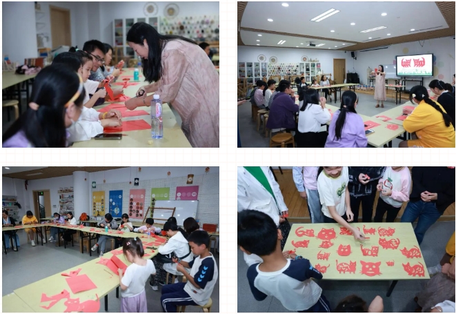 “蠶貓剪紙要注意蠶貓大眼睛的特點(diǎn)”,錢老師親自示范蠶貓臉部和整只蠶貓的剪紙過程。觀看之后,小朋友們不僅抓住了蠶貓的特點(diǎn),還融合了自己的創(chuàng)意設(shè)計(jì),剪出一只只活靈活現(xiàn)的蠶貓。
