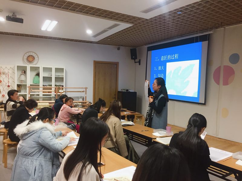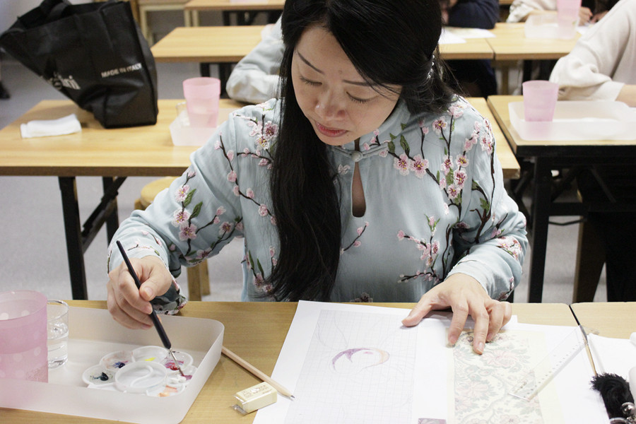 魯老師告訴我們,現(xiàn)在的絲織工廠已經(jīng)不再使用傳統(tǒng)的手繪意匠,而變成了電腦繪制。在此次女紅傳習(xí)館開展的“法國意匠繪制體驗工坊”中,學(xué)員們不僅了解、學(xué)習(xí)了逐漸退出絲織行業(yè)的傳統(tǒng)手工意匠繪制工序,也通過活動感悟到了絲織行業(yè)的嚴謹與細致。不少學(xué)員笑著說:“以后一定會特別珍惜家里的織物,畢竟每一件背后都有著匠人們的辛勞付出!”