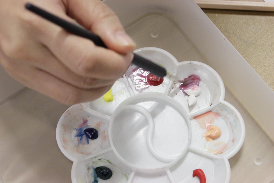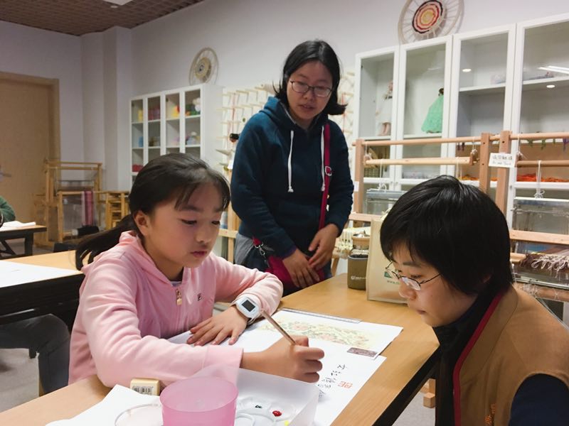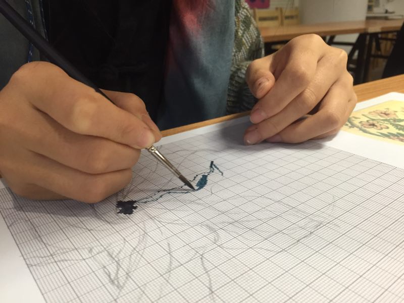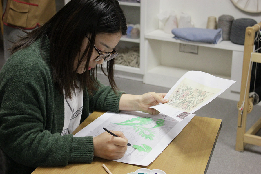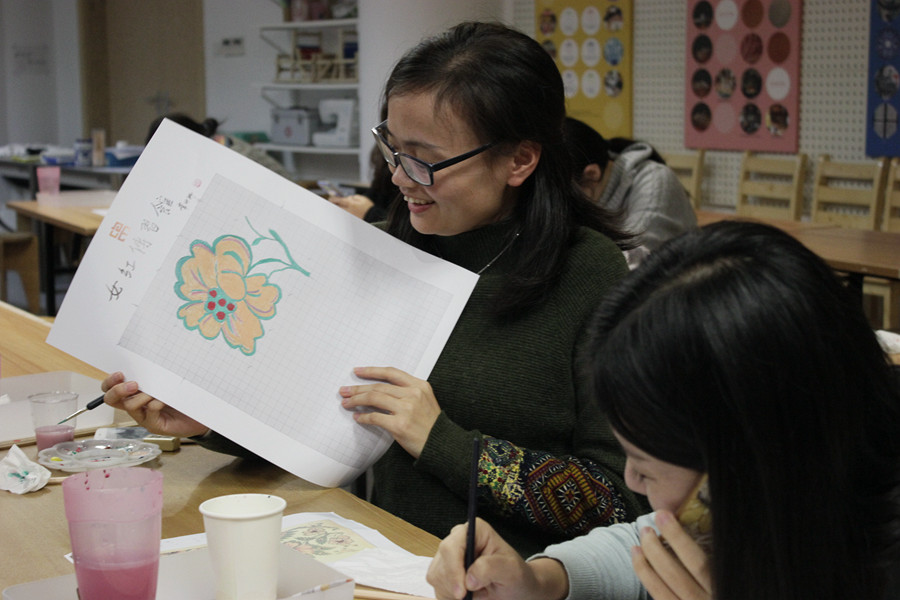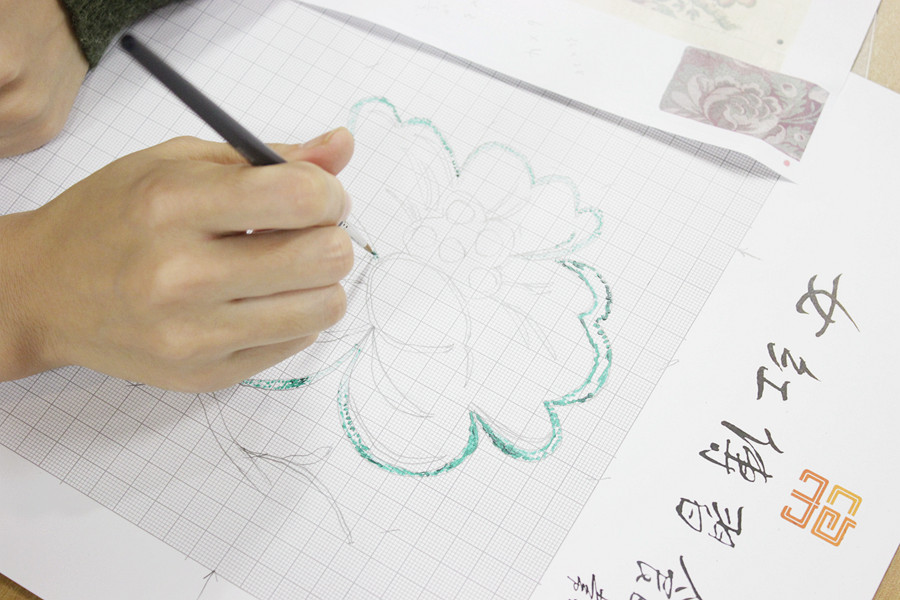 在此次工坊中,學(xué)員們體驗的主要是其中的三個步驟:紋樣放大、勾邊、涂色。