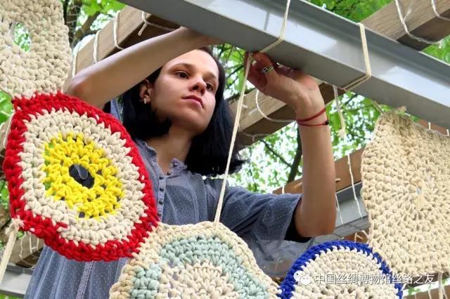 還記得上周六由15組親子家庭共同編織的蕾絲墻么?“大朋友”和“小朋友”們在兩位編織老師的指導下,用手中的編織線為中國絲綢博物館打造了一片獨特的風景。