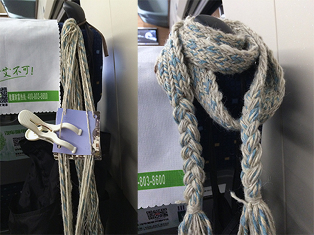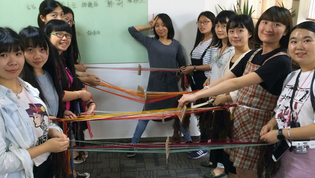 邢振答:我正迫不及待想知道鳥丸老師會安排我什么工作,鳥丸織子老師非常幽默,極具人格魅力,同時又有非常多的授課經(jīng)驗(yàn)。例如,她會讓我們自己發(fā)揮想象力去創(chuàng)造織布工具,道具。非常靈活,是啟發(fā)創(chuàng)造力,想象力的課程。